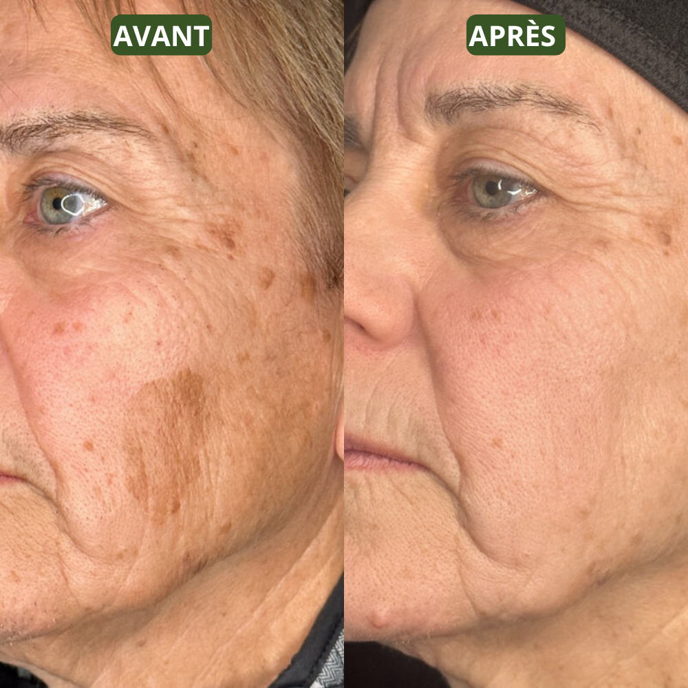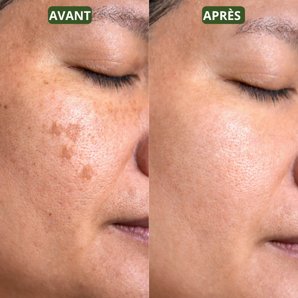 Estompe les taches brunes et les marques pigmentaires. réduction visible, jusqu’à 70 % en 30 jours.